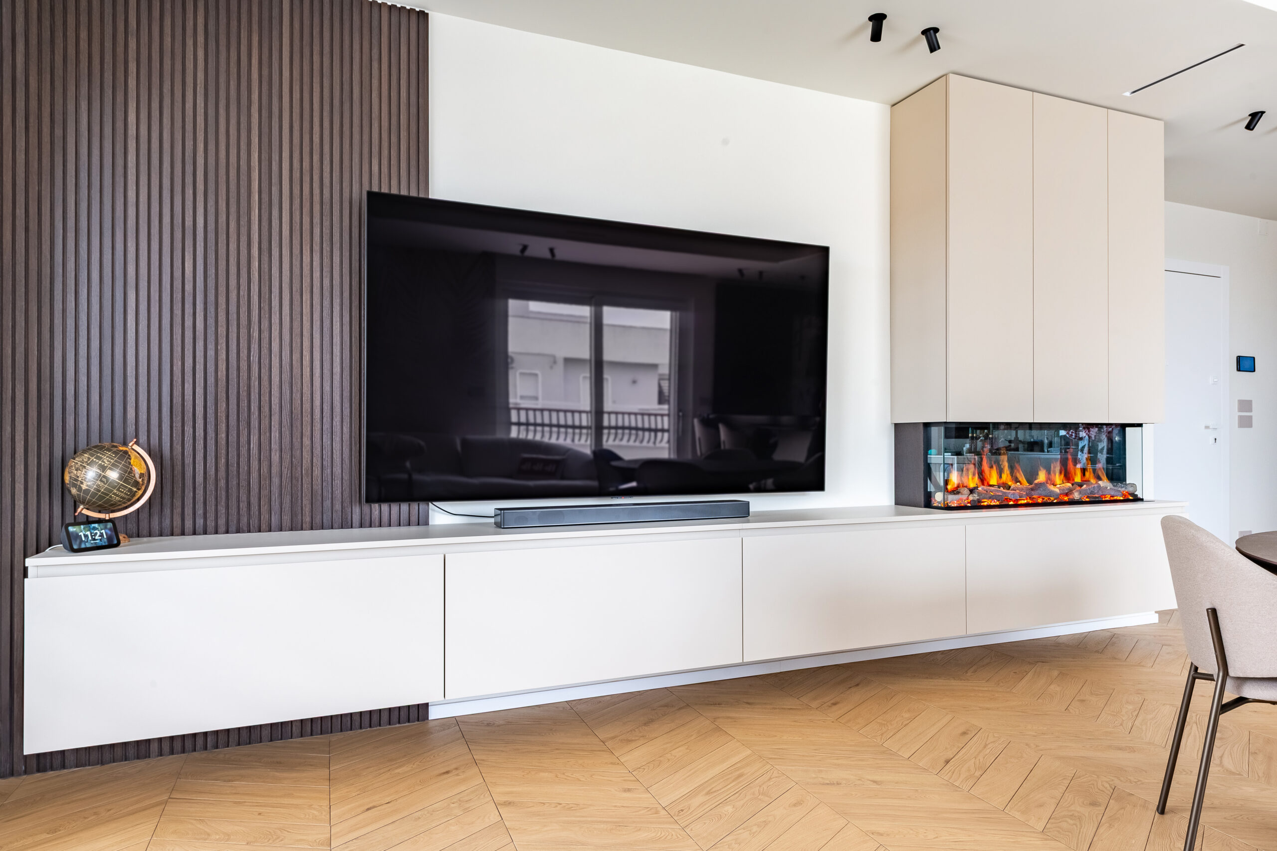 L’intervento si fonda su un equilibrio calibrato tra comfort e raffinatezza, dove ogni scelta progettuale nasce dalla ricerca dell’armonia: il linguaggio stilistico predilige linee pulite, volumi essenziali e una palette cromatica morbida e avvolgente. La selezione dei materiali è volta a evocare una sensazione di benessere diffuso.